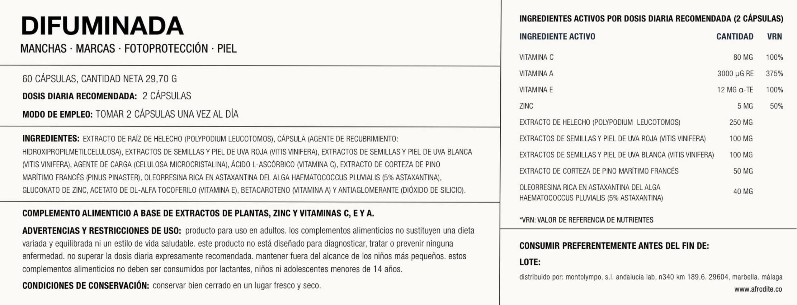 este pack incluye una potente mezcla de 26 activos entre antioxidantes, extractos naturales, vitaminas, minerales y probióticos.luminosa y difuminada trabajan en sinergia para nutrir tu piel desde el interior. estos beneficios se manifiestan con cada regeneración de la piel, en ciclos de 28 días.hemos seleccionado y mezclado cuidadosamente cada activo en las proporciones adecuadas. así, día tras día, desde el interior y de manera natural, tu piel se beneficia de cada ingrediente contenido en estas cápsulas, impulsando la regeneración celular y maximizando la absorción de cada componente para una piel saludable y radiante.