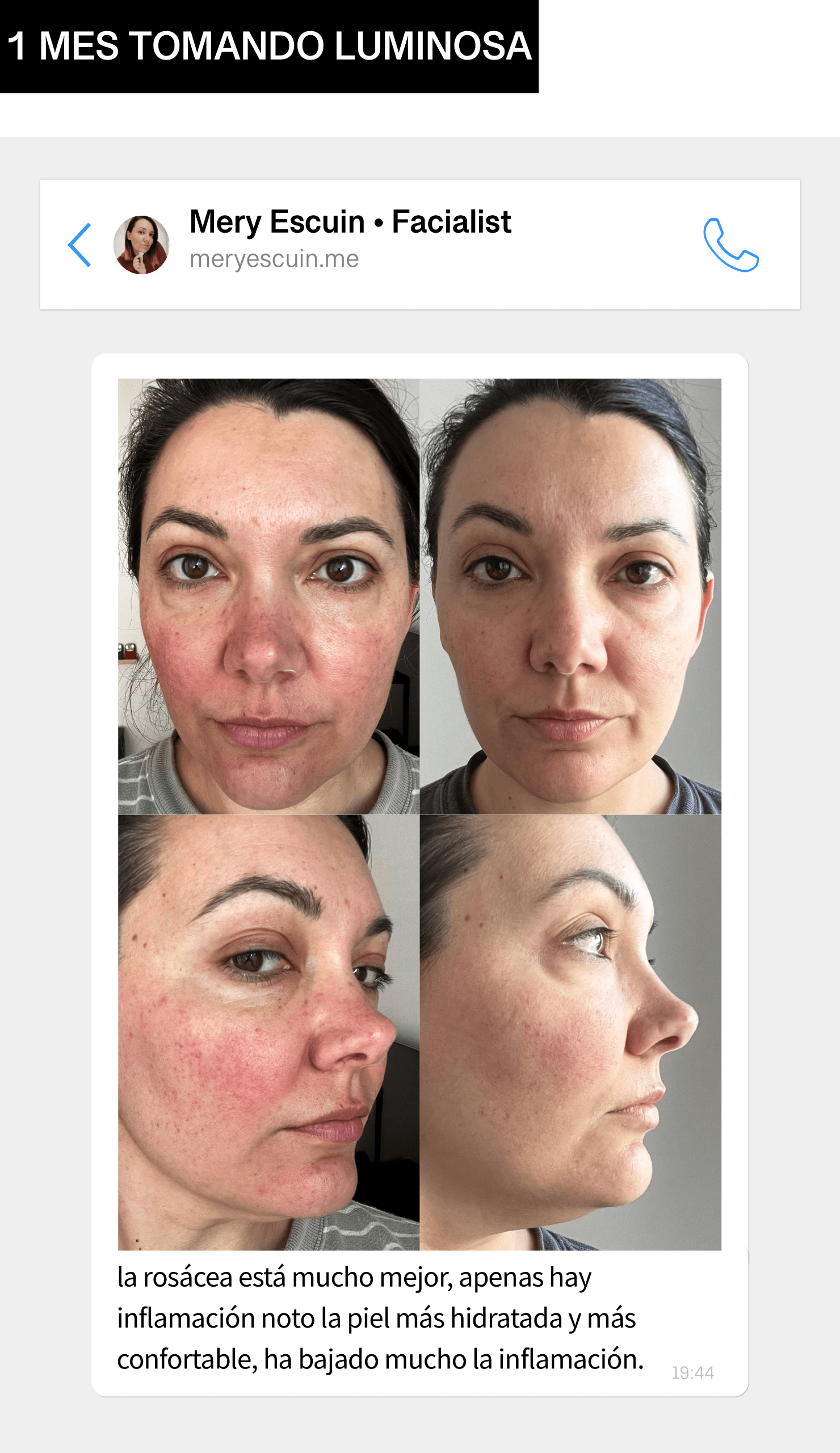 el pack perfecto con luminosa y difuminada.cápsulas naturales inspiradas en los beneficios que tiene el agua de mar y el salitre marino en la piel, formuladas con la rigurosidad de 142 evidencias científicas combinadas.actúan sinergeticamente tomándolas juntas.luminosa ayuda a combatir brotes, irritaciones y rojeces, mientras regula el sebo y estimula la regeneración celular. por su parte, difuminada contiene 9 antioxidantes naturales que actúan en sinergia para suavizar y difuminar marcas, manchas e imperfecciones.