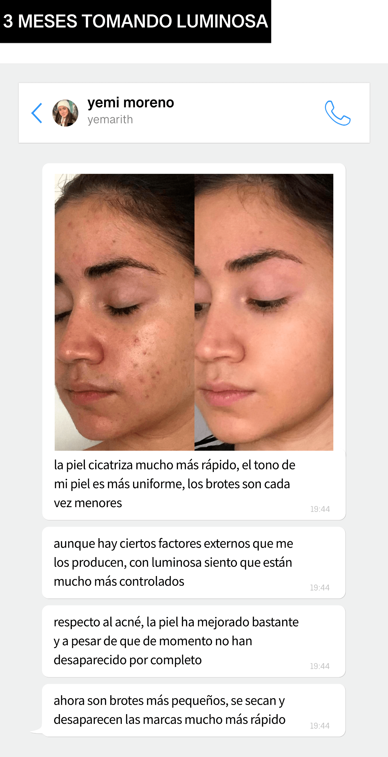 BROTES DE ACNÉ Y MARCASel cambio que más valoro es haber podido decir adiós a los brotes de acnéy el proceso tan rápido de curación y eliminación de la marquitas de granitos